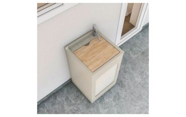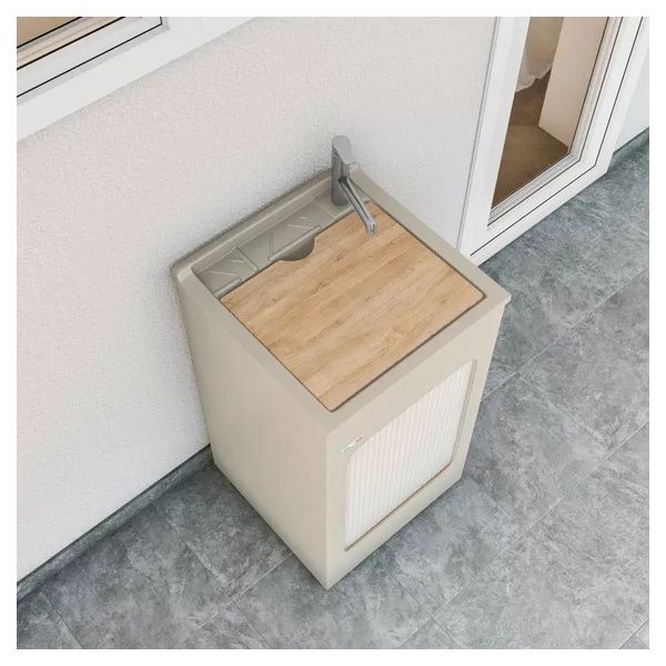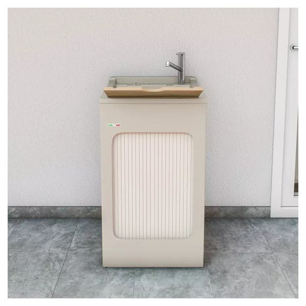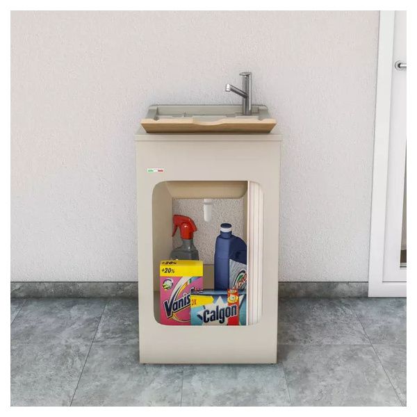 Fornito di tavola lavapanni in legno massello (escluso modello Jolly), lavatoio in ABS metacrilato, fornito di serrandina a scomparsa laterale, sifone e troppopieno.