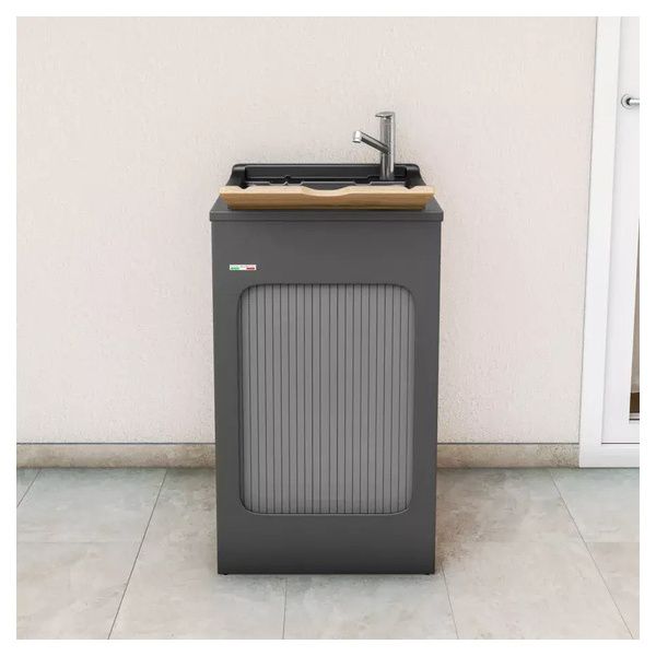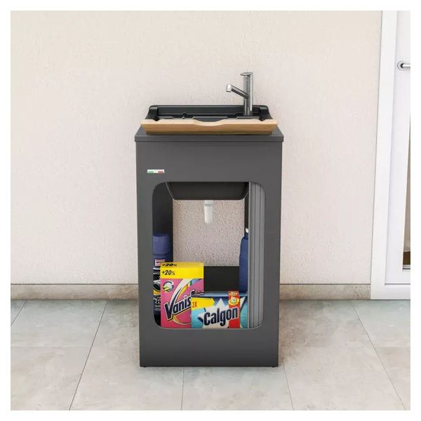 Fornito di tavola lavapanni in legno massello (escluso modello Jolly), lavatoio in ABS metacrilato, fornito di serrandina a scomparsa laterale, sifone e troppopieno.