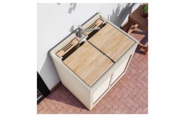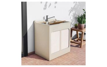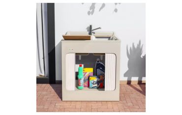 Fornito di 1x tavola lavapanni in legno massello (escluso modello Jolly), lavatoio in ABS metacrilato, fornito di serrandina a scomparsa laterale, sifone e troppopieno.