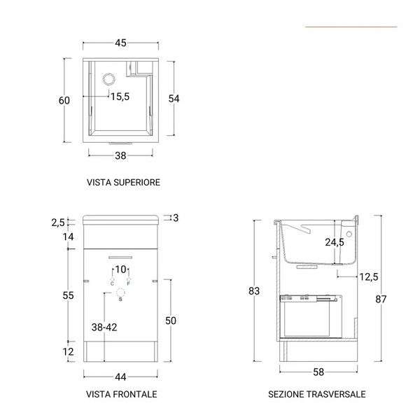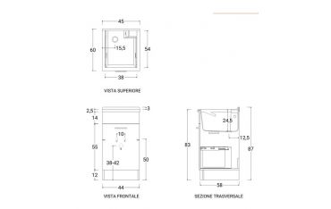 - Dimensioni interne vasca 38 x 54 cm