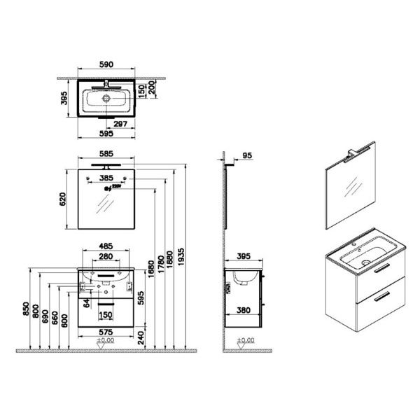 Mobile sospeso a due cassetti con chiusura rallentata soft-close con maniglie cromate, completo di lavabo in ceramica, specchio e lampada a LED. Essenziale e rifinito, dalle linee studiate per adattarsi a qualsiasi ambiente bagno. Questo set comprende la base del mobile a due cassetti con maniglie cromate, lavabo in ceramica e specchio completo di lampada applique a luce con tecnologia LED. La profondità ridotta del mobile rende questo articolo versatile, salvaspazio e di facile installazione.