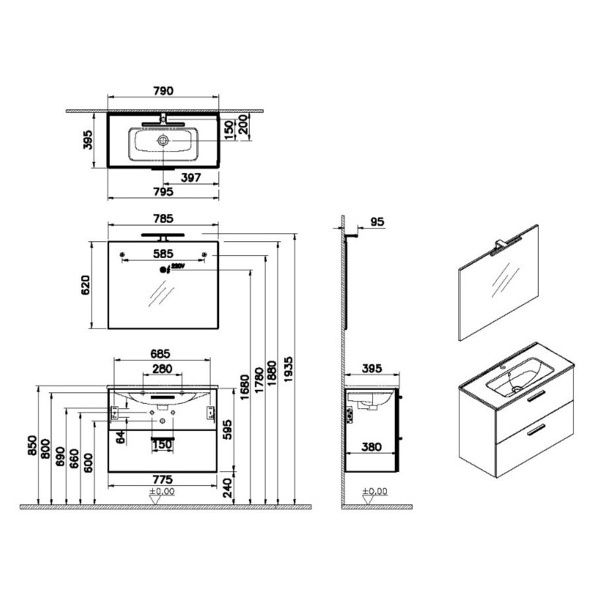 Lavabo Sospeso Vitra MIA 80CM con Specchio Cordoba - 75101