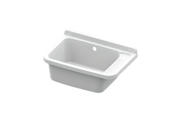 È realizzato in Italia in resina di alta qualità in grado di resistere a tutti gli acidi ad uso domestico e agli agenti atmosferici. Il lavabo può essere sfruttato negli spazi ridotti sia all'interno che all'esterno di casa, dalla lavanderia al garage, dal terrazzo al giardino ma anche in cantina, in officina, sul balcone e così via. Di colore bianco, è dotato di vano laterale con piano d'appoggio antiscivolo, sifone a 1 via, piletta e accessori per il montaggio a parete.