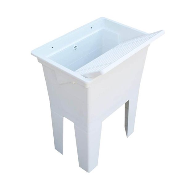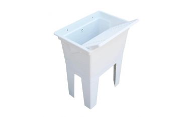Lavatoio monoblocco completamente in resina. Resistente a tutti gli acidi di uso domestico, e agli agenti atmosferici. Vasca da 35 litri circa comprensiva di asse di lavaggio con portasapone in resina P.P. stampaggio a iniezione.