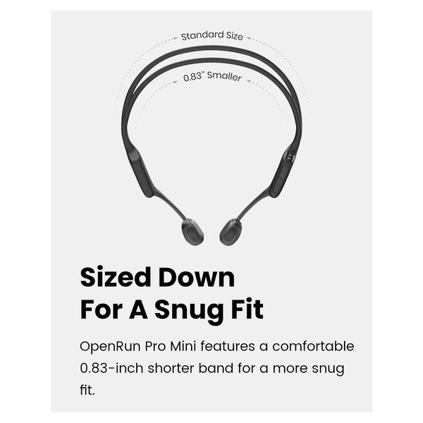 Fascia più corta di 21 mm rispetto alla misura convenzionale per creare una vestibilità sicura e stabile per le teste di dimensioni più piccole. C'è sempre una cuffia Shokz adatta a tutti