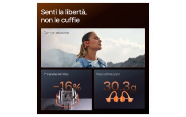 Massimizza il comfort: il design aperto Shokz è noto per mantenere le orecchie pulite e, insieme alla nostra ultima tecnologia DualPitchTM che riduce sostanzialmente le vibrazioni, le cuffie sono ora ancora più comode da indossare per periodi prolungati, così puoi allenarti in tutta tranquillità.