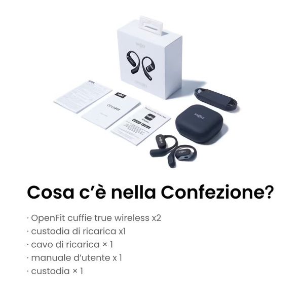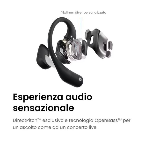 - Tecnologia innovativa Shokz DirectPitch™ per l'ascolto ad orecchio libero