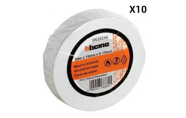 Nastro Isolante In Pvc Con Plastificante Autoestinguente BTicino 19MMX20MT Bianco - BT-SN2019B - 10 Pezzi