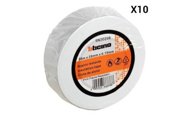 Nastro Isolante In Pvc Con Plastificante Autoestinguente BTicino 25MMX20MT Bianco - BT-SN2025B - 10 Pezzi