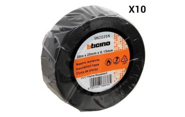 Nastro Isolante In Pvc Con Plastificante Autoestinguente BTicino 25MMX20MT Nero - BT-SN2025N - 10 Pezzi