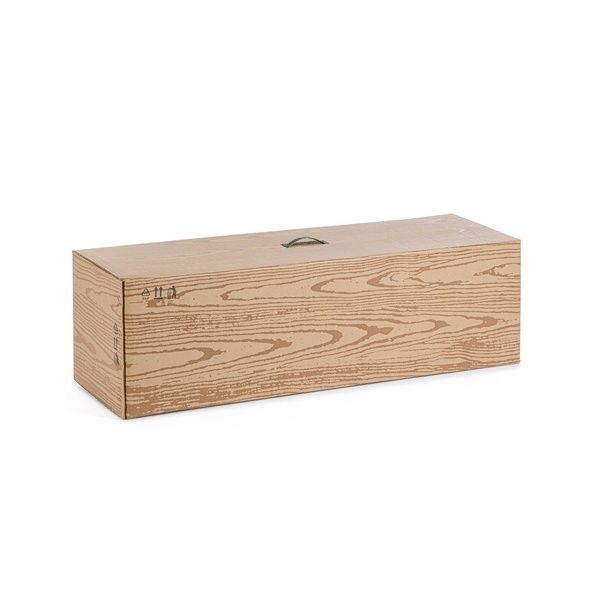 Apertura facilitata ad ombrello. Cartone effetto legno con etichetta colorata.
