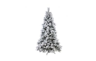 Albero innevato, struttura e base in metallo. Materiale degli aghi: PVC. Corone in metallo, apertura facilitata ad ombrello.
