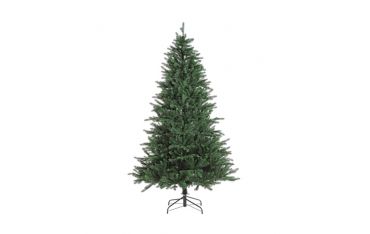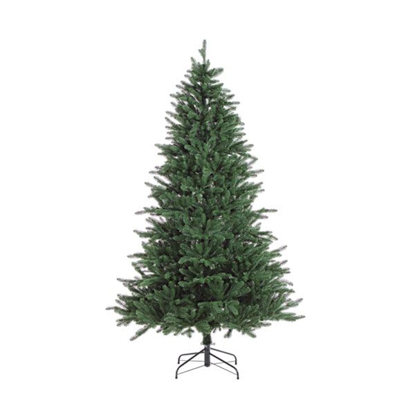 Albero con aghi in materiale PE stampato ad iniezione. Colore verde intenso, struttura e base in metallo. Corone in metallo con apertura facilitata ad ombrello.