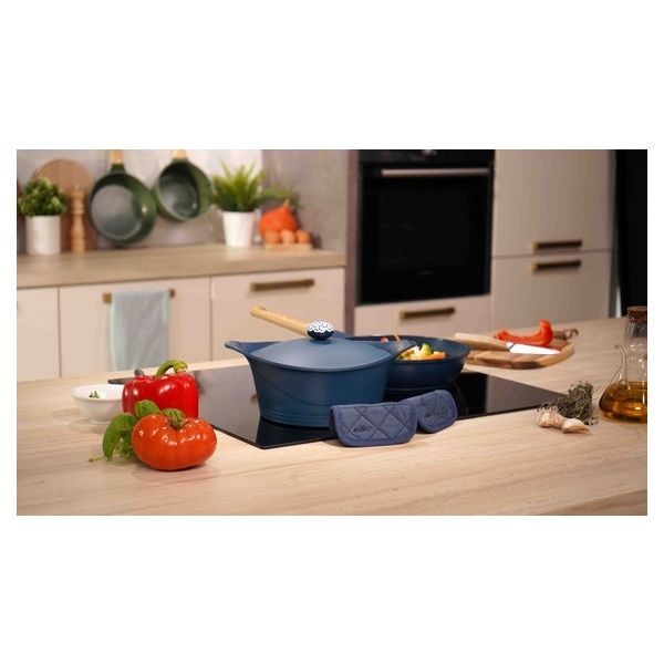 Resistente e leggera, questa casseruola di alta qualità è realizzata in fusione di alluminio rivestita in ceramica e non contiene composti chimici dannosi.