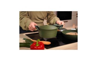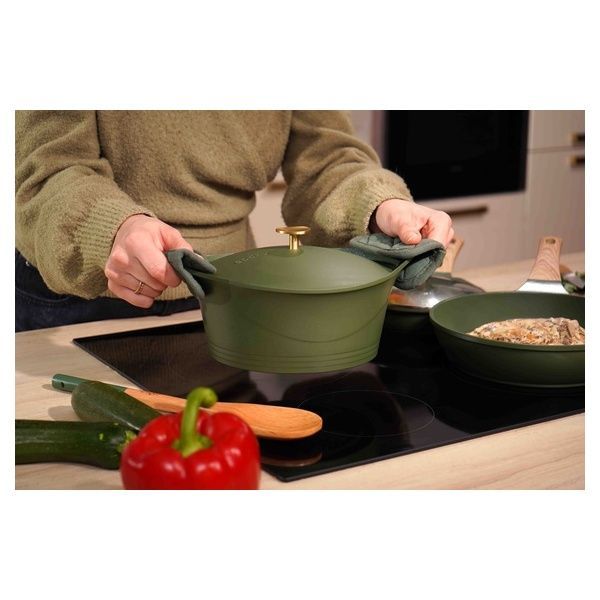 Resistente e leggera, questa casseruola di alta qualità è realizzata in fusione di alluminio rivestita in ceramica e non contiene composti chimici dannosi.