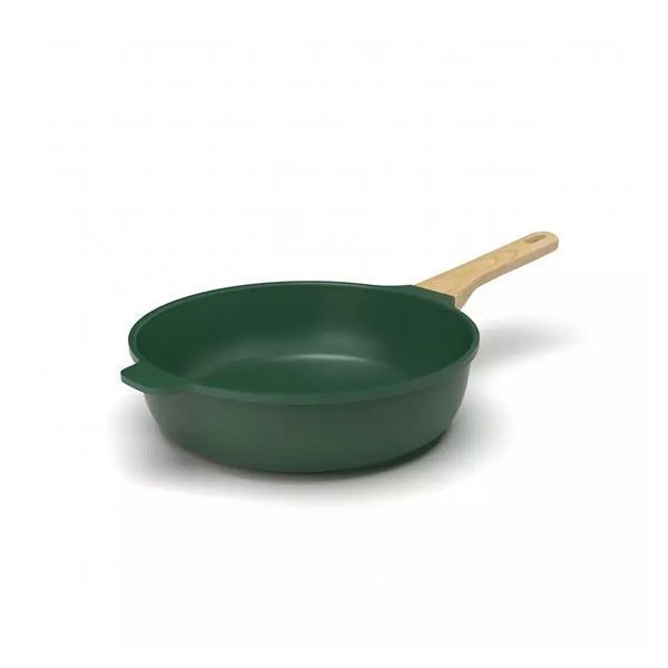 La padella ha un manico in finto legno, realizzato in polimero.