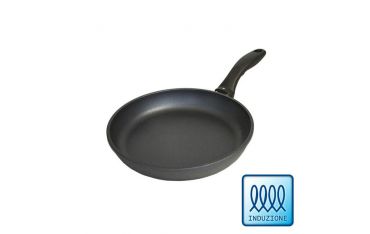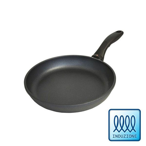 Ideale per la cucina di tutti giorni. Padella molto versatile. Dimensioni cm 24 di diametro per cm 4 di altezza. Manico ergonomico. Qualità Swiss Made rivestimento antiaderente rinforzato con polvere di diamante.