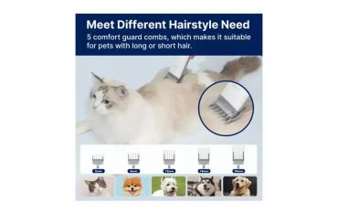 Questo tagliacapelli elettrico per animali domestici è super facile da usare ed è dotato di 5 pettini di protezione comfort di diverse lunghezze. Grazie al pettine di protezione limite rimovibile, puoi regolare la lunghezza del pelo del tuo animale in base al suo aspetto.