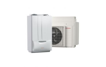 Pompa di calore ibrida. Progettata per sostituire i vecchi generatori anche in impianti con termosifoni, aumenta l’efficienza energetica, riduce le emissioni di CO2.