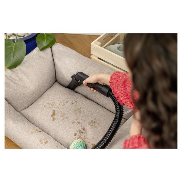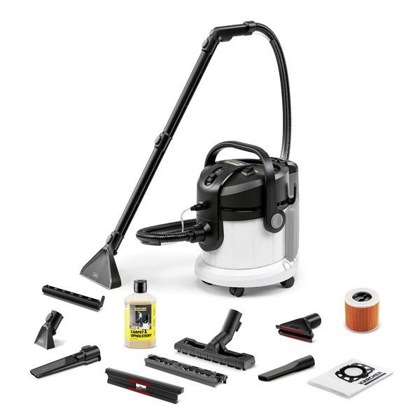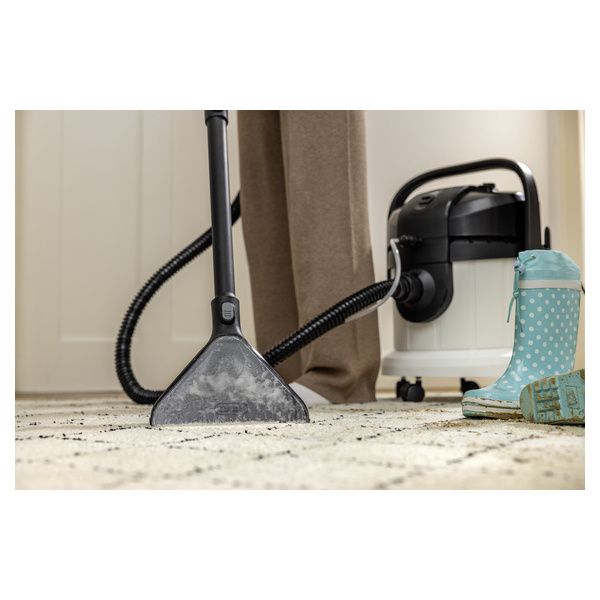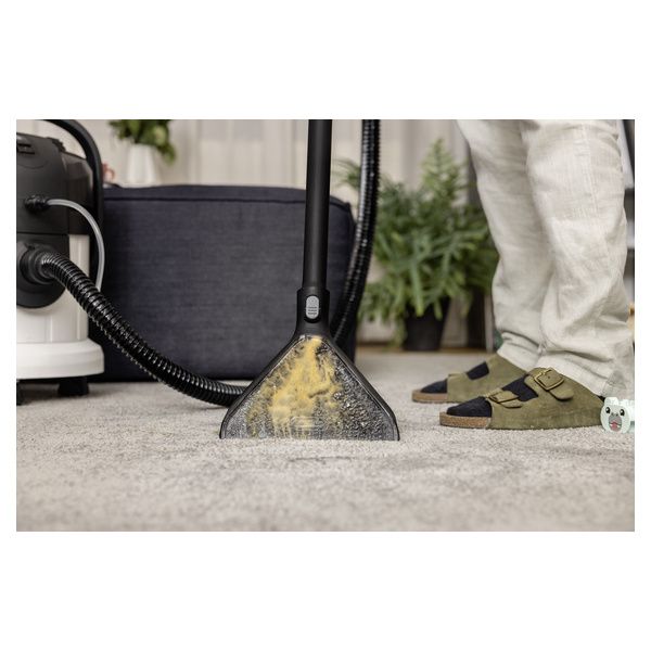Pulizia profonda combinata a design ergonomico e multifunzionalità: SE 4 Plus è efficace su tutte le superfici tessili. La collaudata tecnologia di lavaggio di Kärcher garantisce migliori risultati di pulizia: acqua fresca del rubinetto e il detergente per tappeti Kärcher RM 519 penetrano in profondità nelle fibre tessili e successivamente vengono aspirati insieme allo sporco. Il dispositivo è ideale per famiglie, soggetti allergici e famiglie con animali domestici. SE 4 Plus è un prodotto 3 in 1, cioè funziona anche come un vero e proprio aspirapolvere per liquidi e solidi. Il grande serbatoio dell'acqua con capienza 4 litri è resistente agli urti e può essere rimosso, facilitando il riempimento e lo svuotamento. L'acqua sporca aspirata viene raccolta nel contenitore. La maniglia di trasporto 3 in 1 è progettata per facilitare il trasporto, l'apertura, la chiusura e lo svuotamento del contenitore. Gli accessori in dotazione possono essere riposti ordinatamente sul dispositivo stesso. Dopo l'uso, il dispositivo è facile da pulire.