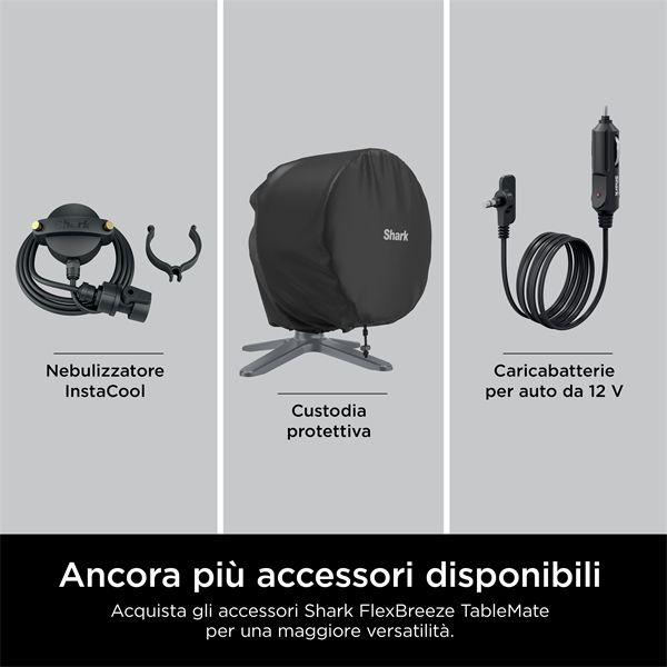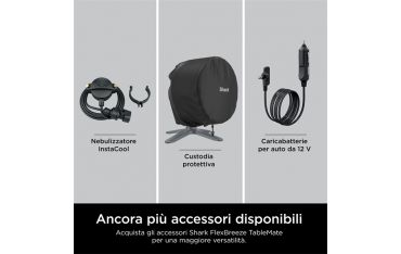 FlexBreeze TableMate è compatibile con l'accessorio di nebulizzazione Shark (venduto separatamente), che abbassa la temperatura fino a 5°C.***