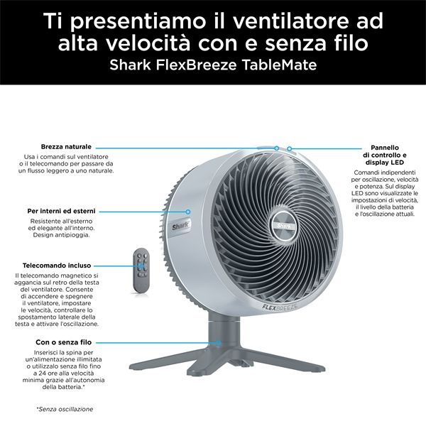Dall'esterno all'interno. Con o senza filo. Shark FlexBreeze TableMate offre un raffreddamento eccezionalmente potente, perfetto per ogni ambiente.