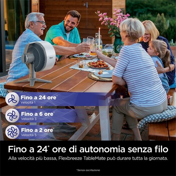 - Ventilatore con o senza filo, che offre fino a 24 ore* di durata della batteria senza fili