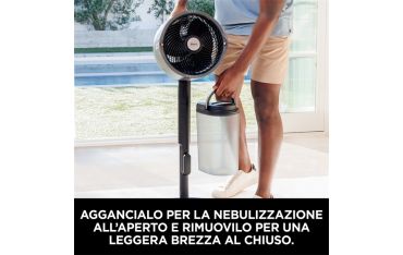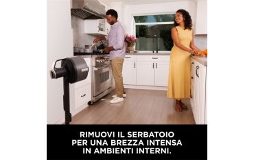 Lo Shark FlexBreeze Pro Mist è facile da trasportare per un immediato sollievo dalla calura, senza alcuno sforzo, ovunque tu sia. Grazie al serbatoio portatile e rimovibile MistPro di Shark, puoi usufruire della nebulizzazione senza bisogno di tubi o secchi d'acqua, sia su piedistallo che su un tavolo. È l'ideale per trascorrere un pomeriggio di sole al parco o per assistere alle competizioni sportive dei tuoi figli in estate. Utilizzando acqua fredda, può abbassare la temperatura fino a 6 °C*.