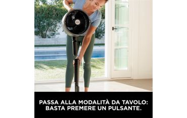 Passa facilmente dalla modalità su piedistallo a quella da tavolo con la semplice pressione di un pulsante: premi e solleva. La nebulizzazione e l’oscillazione sono disponibili in entrambe le modalità. Collega il dispositivo per un'alimentazione continua o utilizza la modalità senza fili, con un'autonomia massima di 24** ore alla velocità 1.