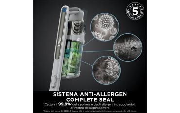 - La tecnologia Anti-Allergen Complete Seal cattura e intrappola oltre il 99,9% della polvere e degli allergeni** nell’apposito contenitore, impendendone il rilascio nell’aria