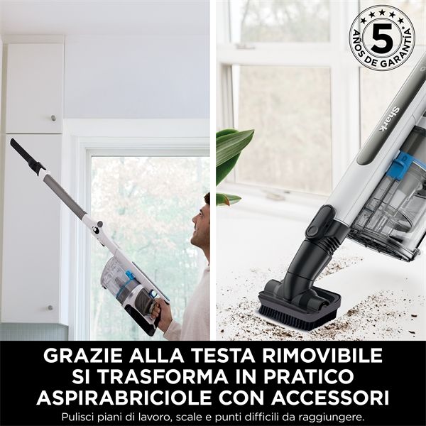 Shark PowerPro Pet si trasforma in un pratico aspirabriciole ideale per soffitti, scale, mobili, piani di lavoro, interni auto e punti difficili da raggiungere. Pulisci perfettamente ogni centimetro della casa grazie agli accessori inclusi (bocchetta per fessure, accessorio per tappezzeria e bocchetta motorizzata per peli di animali domestici).