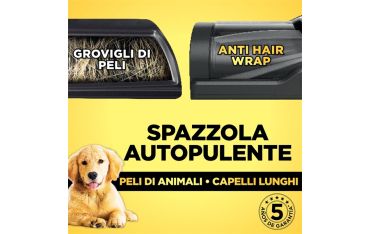 - La tecnologia antigrovigli Anti Hair Wrap separa e rimuove peli e capelli dalla spazzola durante la pulizia