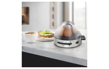 Con una potenza di 350 watt e dimensioni ridotte (20 x 15 cm), questo cuociuova è la scelta perfetta per chi vuole efficienza e semplicità in poco spazio. Leggero (solo 0,5 kg) e componibile in singoli pezzi, CASO Design E7 è l’alleato ideale per una colazione sana, veloce e senza pensieri.