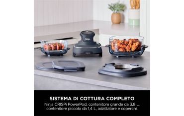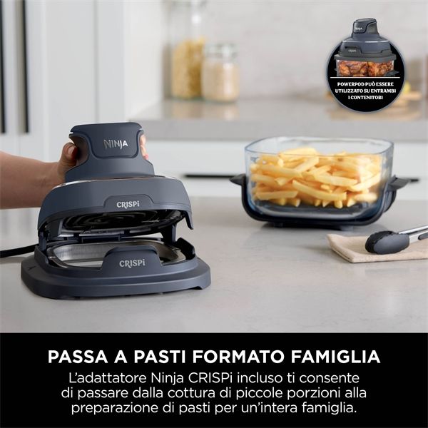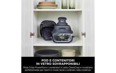 Ti presentiamo la friggitrice ad aria 4 in 1 portatile in vetro Ninja CRISPi, tutta la potenza di una friggitrice ad aria di dimensioni normali a portata di mano. Basta posizionare il leggero e pratico PowerPod da 1.700 W su uno dei contenitori di cottura in vetro per preparare pasti formato famiglia o monoporzione con i 4 programmi di cottura. Inoltre, puoi cucinare usando fino al 50% di energia in meno rispetto a un forno ventilato*.