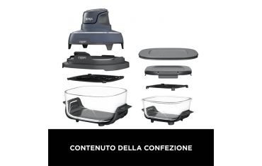 I contenitori in vetro, l’adattatore e i coperchi sono lavabili in lavastoviglie.