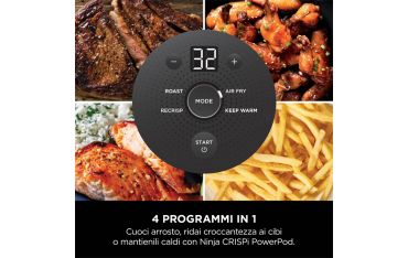 - Quattro modalità preimpostate: Air Fry, Roast, Keep Warm e Recrisp (o Max Crisp)