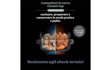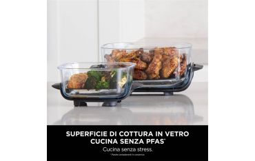 Ecco i contenitori in vetro resistenti agli shock termici Ninja CleanCrisp. Cottura senza PFAS**. Il vetro permette di controllare l’avanzamento della cottura degli alimenti.