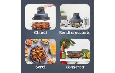 Ninja CRISPi è la friggitrice ad aria portatile con contenitori in vetro termoresistente. Compatta ma potente (1.700 W), offre 4 funzioni: friggi ad aria, arrostisci, riscalda e ridona croccantezza. Risparmia spazio, energia e grassi. Prepara, cuoci e servi in un solo contenitore.