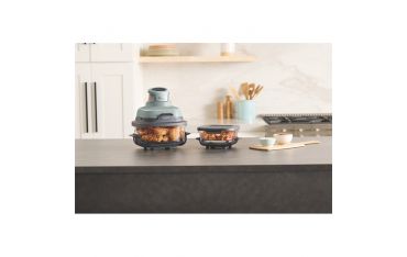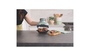 Questo sistema di cottura completo dispone di 4 programmi: Air Fry (Frittura ad aria), Roast (Cottura arrosto), Keep Warm (Mantenimento al caldo) e Recrisp (Nuova croccantezza). Le piastre antiaderenti garantiscono la circolazione del flusso d’aria calda fino a 185 °C, per cibi cotti uniformemente e croccanti al punto giusto.