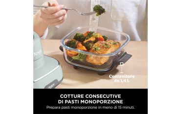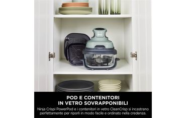 Ti presentiamo la friggitrice ad aria 4 in 1 portatile in vetro Ninja CRISPi, tutta la potenza di una friggitrice ad aria di dimensioni normali a portata di mano. Basta posizionare il leggero e pratico PowerPod da 1.700 W su uno dei contenitori di cottura in vetro per preparare pasti formato famiglia o monoporzione con i 4 programmi di cottura. Inoltre, puoi cucinare usando fino al 50% di energia in meno rispetto a un forno ventilato*.