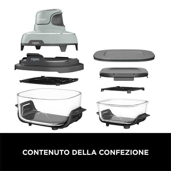 Ninja CRISPi è la friggitrice ad aria portatile con contenitori in vetro termoresistente. Compatta ma potente (1.700 W), offre 4 funzioni: friggi ad aria, arrostisci, riscalda e ridona croccantezza. Risparmia spazio, energia e grassi. Prepara, cuoci e servi in un solo contenitore.