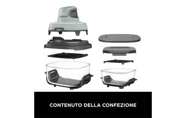 I contenitori in vetro, l’adattatore e i coperchi sono lavabili in lavastoviglie.