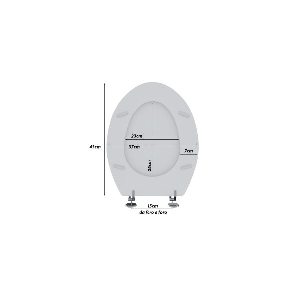 Sedile WC realizzato in MDF (Medium Density Fibreboard), materiale ricavato dalla miscela di resine e fibre di legno vergine di prima scelta; è considerato per le caratteristiche tecnico meccaniche e di resistenza un materiale di qualità.