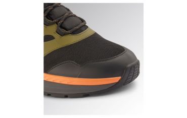 Calzatura da lavoro mid-cut di ispirazione outdoor, priva di elementi di protezione (puntale e inserto antiperforazione) secondo la normativa EN 20347: 2022. Tomaia in tessuto tecnico poliestere idrorepellente con struttura in TPU film termonastrato a sostegno laterale. Inserti in microfibra su tallone e supporto caviglia. Rinforzo anti urto della punta in TPU. Resistente all'acqua grazie alla membrana impermeabile DIA-tex con costruzione a calza ''bootie''. Plantare estraibile microforato in EVA termoformata e tessuto in poliestere. Metal free.