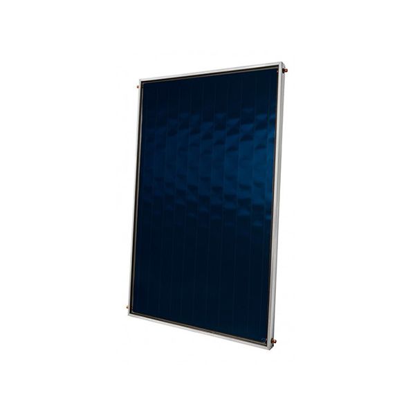 COLLETTORE SOLARE: 2 Unità. Collettore solare piano certificato EN12975, CE, Solar Keymark, KIWA modello BLUh+/BLUhx+, avente le seguenti caratteristiche: cassa in profilato di alluminio verniciato colore grigio con isolamento termico in lana di roccia alta densità 45 mm. Piastra solare captante con tubi collettori diametro 22 mm, assorbitore con trattamento altamente selettivo al titanio saldata a laser. Vetro temprato, basso tenore di ferro.