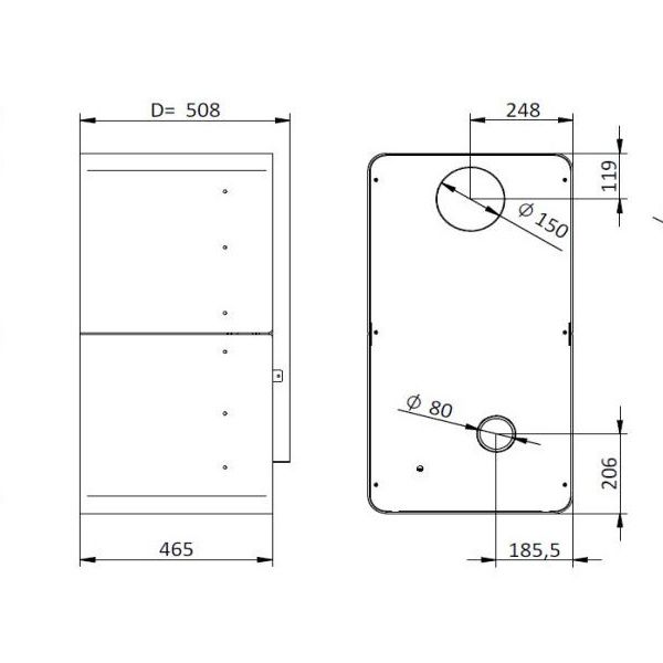 - Dimensioni camera di combustione: 400 x 500 x 300 (mm)