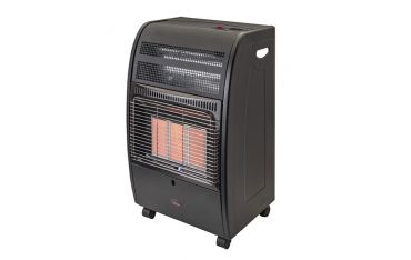 Stufa GPL per interni con regolatore e tubo di alimentazione. Non necessita di tubo per scarico fumi, si sposta facilmente con le 4 ruote.