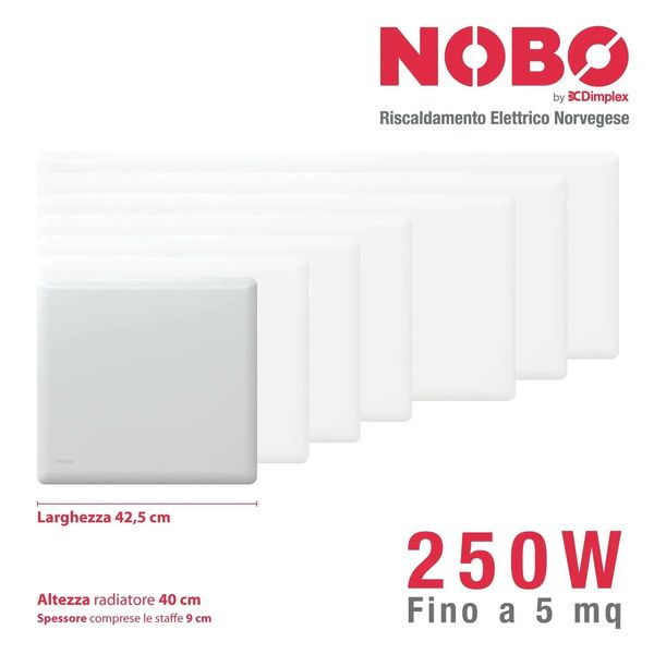 Radiatore Elettrico Norvegese NOBO TOP 250W per Ambienti Fino a 5 mq con Termostato NCU-2Te - E82440002