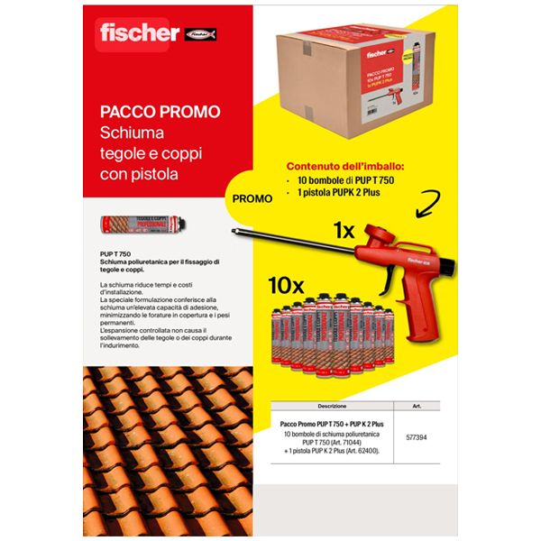 Pacco Promo Fischer 1 Pistola PUP K2 PLUS + 10 Bombolette Schiuma Poliuretanica Tegole e Coppi PUP T 750 - 577394