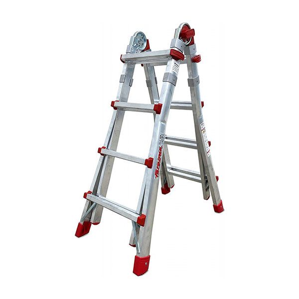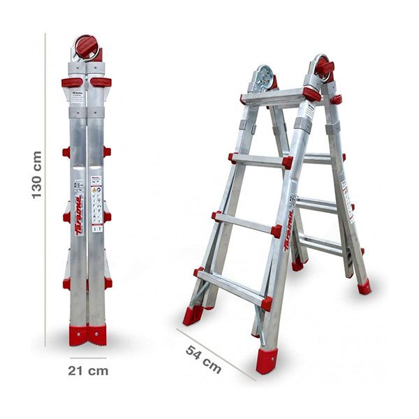 SUPER TELES T4S è la scala telescopica professionale che garantisce 4 modalità di utilizzo: estesa, a forbice, a zoppo o separata in 3 scale differenti. Composta da 4+4 gradini, estendibile a 8+8 con una portata massima 150 kg. l'altezza massima di lavoro è 4,15 mt se aperta, 3,58 mt se a forbice. Costruita secondo le norme EN 131-1, EN 131-4, EN 131-2 2018, supera i test di resistenza di oltre 50.000 cicli di lavoro. Testata dal Politecnico di Milano, ogni scala è dotata del certificato di conformità e collaudo che la rendono la migliore in termini di Resistenza, stabilità e sicurezza.